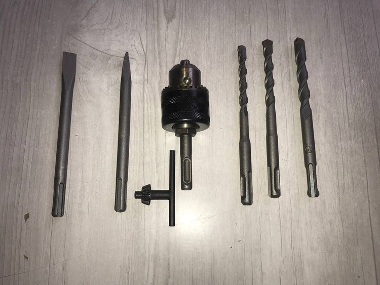 تجهیزات همراه: مته8-10-12 میلی متری،رابط چهارشیار،سه نظام13 به همراه آچار،قلم نوک پهن،قلم نوک تیز